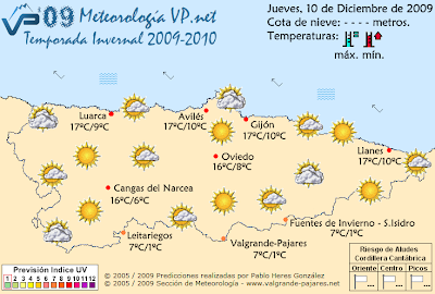 Temperatura Máxima: 17ºCTemperatura Mínima: 10ºCOviedo:Estado Meteo: Inicialmente cielo nuboso o muy nuboso tendiendo durante la jornada a poco nuboso e incluso despejado al final del día.